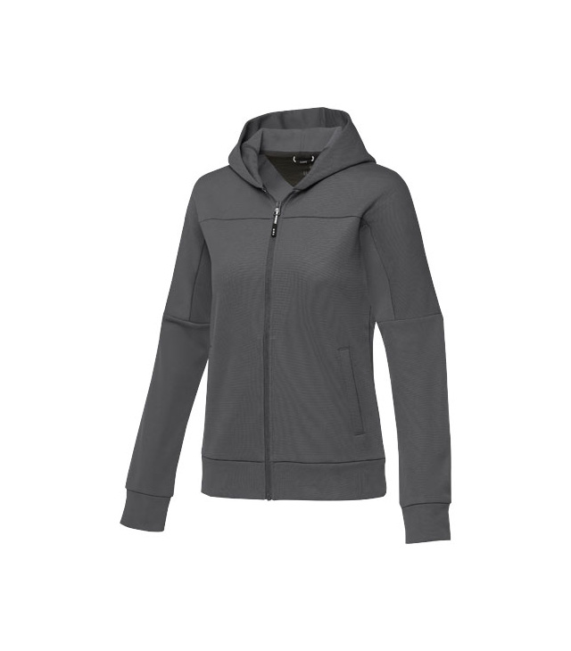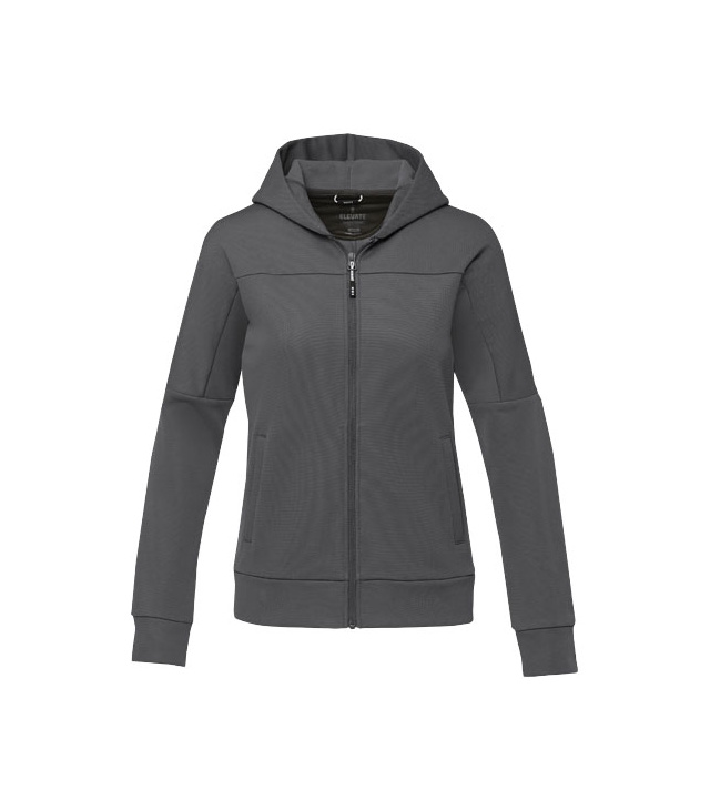 Středový přední otočný zip. Přední kapsy. Kartáčované na vnitřní straně. Značkové závěsné poutko. Saténový nákrčník. Vnitřní port na sluchátka s průtahem na kabel. Půlměsíc. Potisk štítku technologií heat transfer pro větší pohodlí.