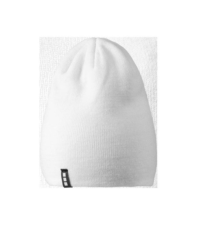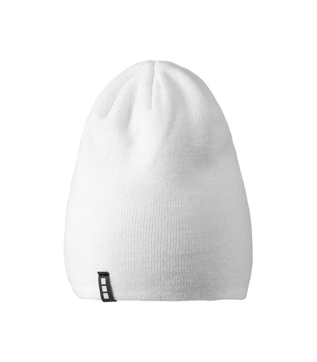 Dvouvrstvá čepice protáhlého tvaru (beanie). Štítek ve formě poutka se značkou.