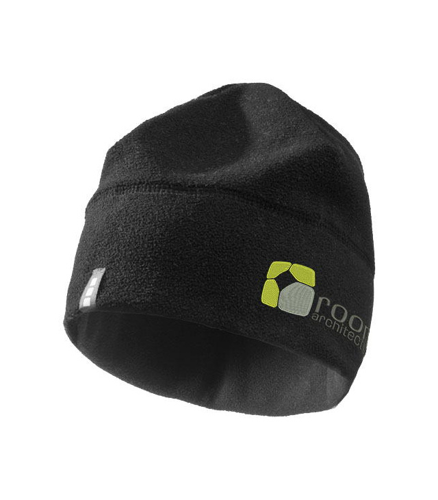 Štítek ve formě poutka se značkou. Fleecová čepice s detailem uzavřeného prošití, které odděluje dvouvrstvý lem čepice s oboustranně protižmolkující úpravou od horní, hlavové části. Štítek Elevate ve formě poutka je našit z lícové strany a v rubové straně je vyšito logo Elevate.
