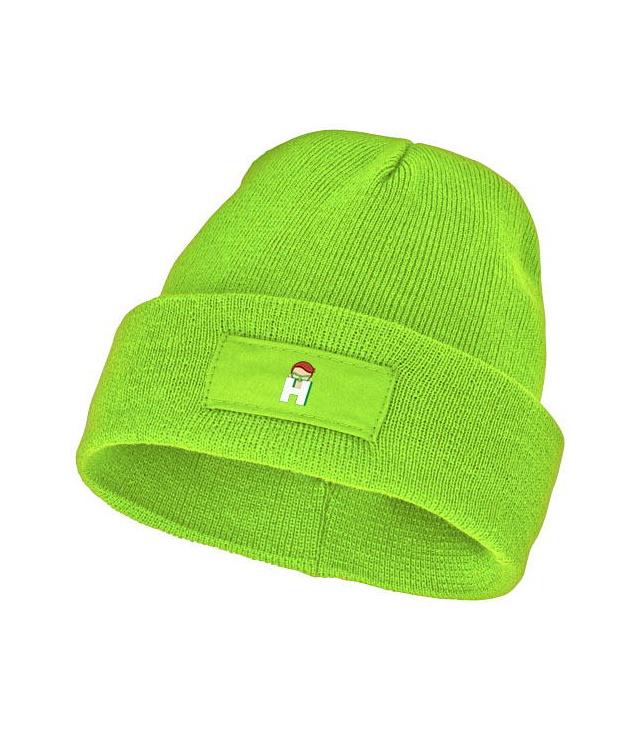 Jednovrstvá čepice protáhlého tvaru (beanie) s dvakrát přeloženým okrajem. Políčko pro umístení logo.