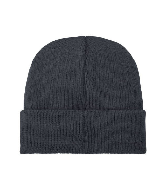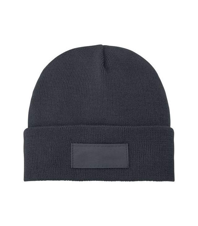 Jednovrstvá čepice protáhlého tvaru (beanie) s dvakrát přeloženým okrajem. Políčko pro umístení logo.