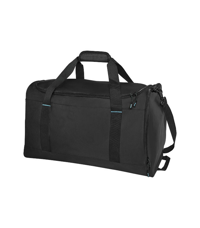 Udržitelná sportovní taška RPET s certifikací GRS vyrobená ze 55 % z recyklovaných materiálů. Obsahuje velkou hlavní přihrádku na zip, zesílený základní panel, boční síťovou kapsu a rozšiřitelnou kapsu na zip odolnou proti vodě. Dodává se s malou vnitřní kapsou na zip pro uspořádání, odnímatelným a polstrovaným ramenním popruhem, rukojetí s polstrovaným uzávěrem na suchý zip a extra rukojetí na pravé spodní straně.
