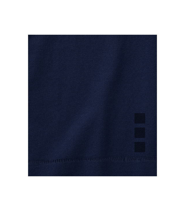 Plochý žebrový límeček. Žebrový úplet manžetek. Na dva knoflíčky. Detaily s vybraným stehem. Saténová lemovka výstřihu. Boční rozparky se saténovou lemovkou. Sedlo. Předsunutá zpevňující lemovka výstřihu s řetízkovým stehováním. Gravírované knoflíčky v barvě. Potisk štítku technologií heat transfer pro větší pohodlí.
